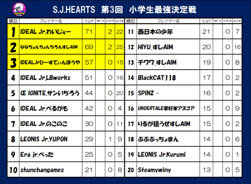 優勝者  IDEAL Jr.わいじぇー 準優勝  ななちょんちょんちろんすしAIM 第3位   IDEALJrひーすてぃんぼうや